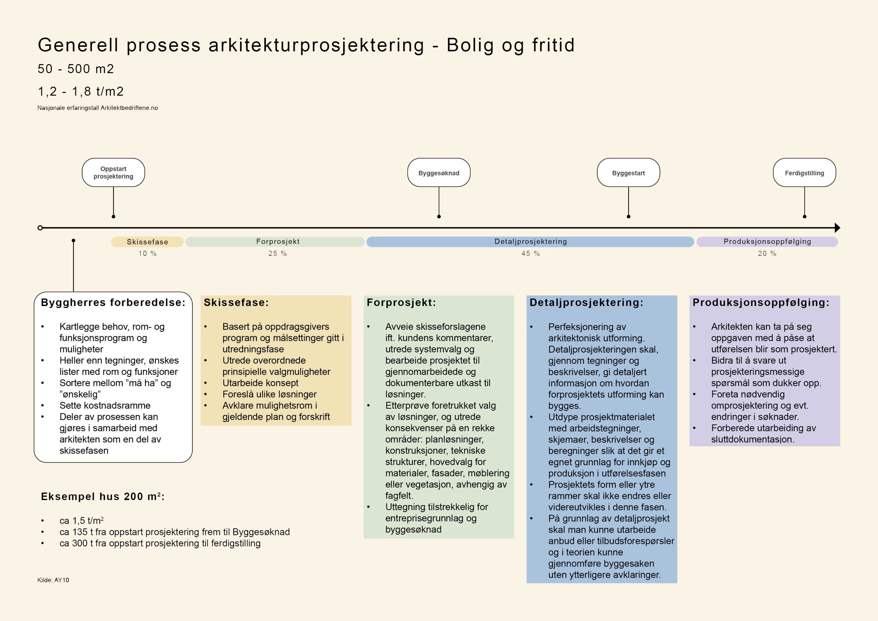 For et best mulig resultat er det lurt å starte planlegging av bygg og utomhusareal i god tid før tenkt oppføring. Som et eksempel kan vi anslå at det tar 4-7 mnd fra skissene på et bolighus er påstartet, til det er klart for å søke kommunen om tillatelse til oppføring av bygget (dette vil naturligvis variere ut fra omfang og kompleksitet). Prosjektet deles inn i ulike faser: mulighetsstudie, skissefase, byggesøknad, detaljeringsfase og byggefase. Mulighetsstudie og skisseprosjekt utgjør vanligvis rundt 30 % av samlet prosjektfase.